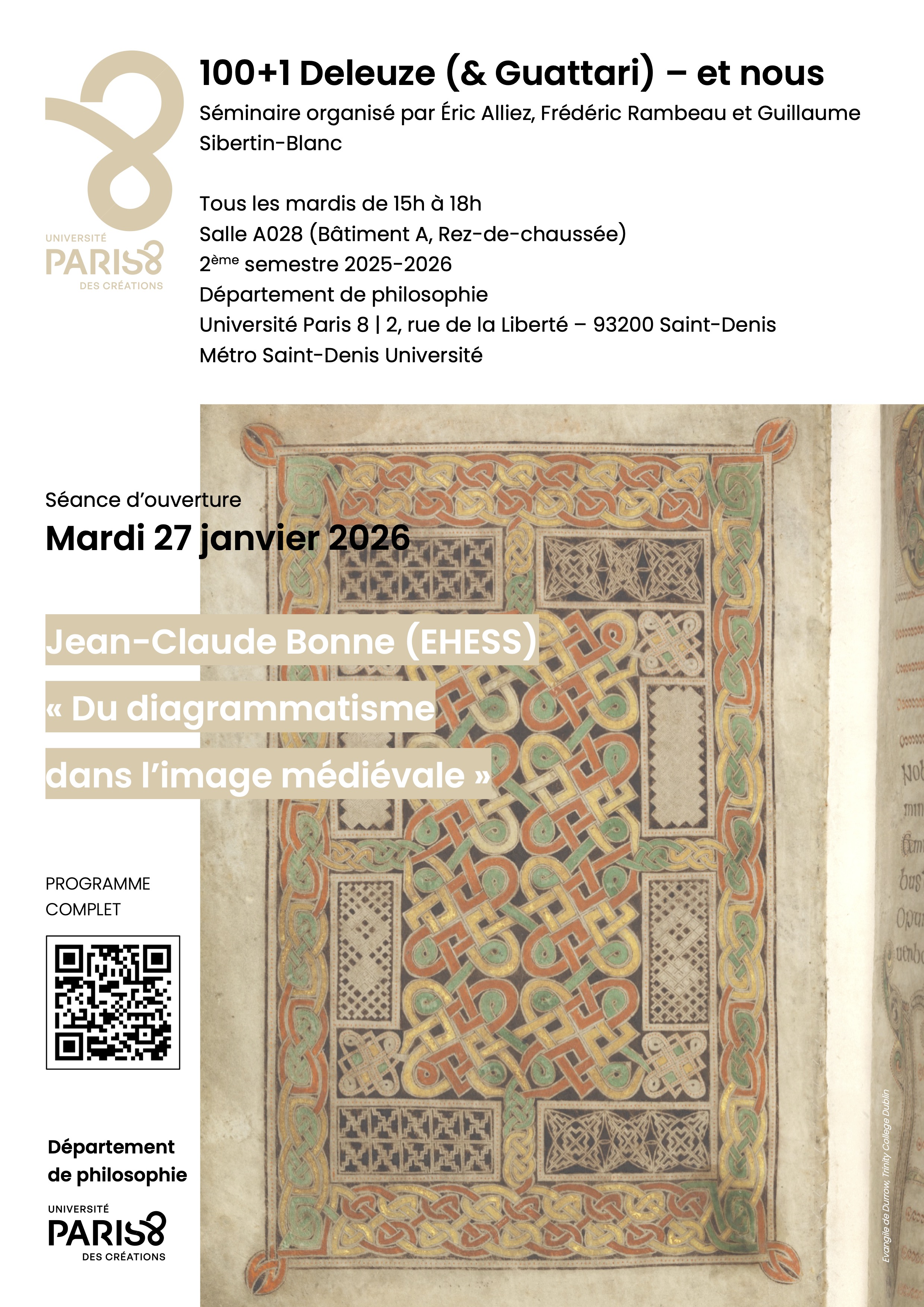 Séminaire. 100+1 Deleuze (& Guattari) – et nous. 1ère séance : Jean-Claude Bonne. Du diagrammatisme dans l’image médiévale. 27 janv. 2026